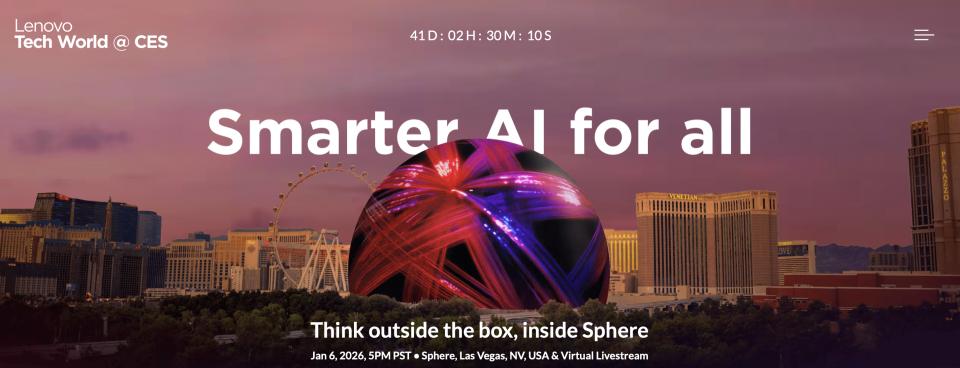 CES 2026 同期,联想将在拉斯维加斯地标建筑 Sphere「球幕影院」呈现史上最高规格的创新科技大会。