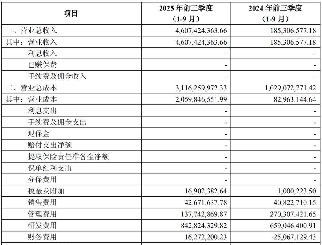 今年10月17日,寒武纪发布财报显示,2025年第三季度公司营收17.27亿元,同比增长1332.52%;2025年前三季度营收则为46.07亿元,同比增长2386.38%。
