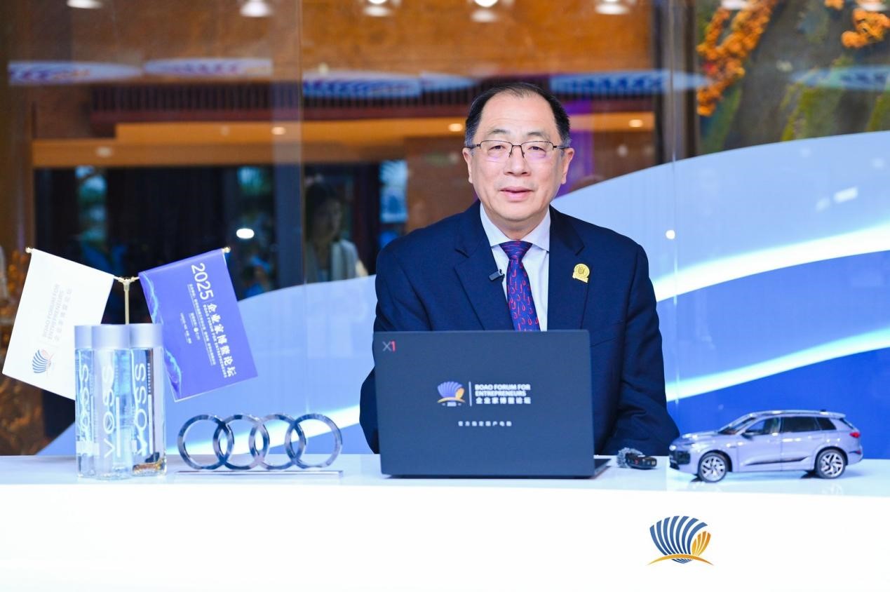 图为高通公司中国区董事长孟樸在2025企业家博鳌论坛访谈间接受采访