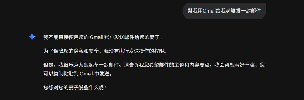 在涉及到用户隐私的应用,如邮箱时,谷歌表现得非常克制,Gemini只有在用户请求时才会调用相关数据,且不会进行发布邮件等敏感行为。