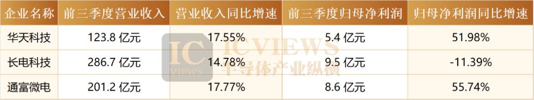 在行业向好的背景下,国内头部封测企业华天科技、长电科技、通富微电陆续发布2025年三季度财报,三家企业整体呈现增长态势,其中部分企业核心指标表现突出,背后折射出国产先进封装技术突破与市场需求升级的深度契合。