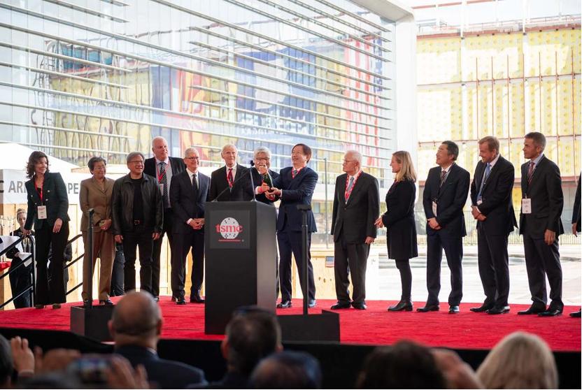时任美国总统拜登亲临站台,高呼“美国制造业回来了”,宣称“台积电将助力美国赢得21世纪经济竞争”,苹果、英伟达、阿斯麦等科技巨头 CEO环绕两侧,让这场工业仪式充满浓厚政治色彩。