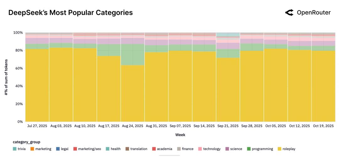 DeepSeek的流量中,有超过2/3是角色扮演和闲聊,显示了其在消费者端的极高粘性。