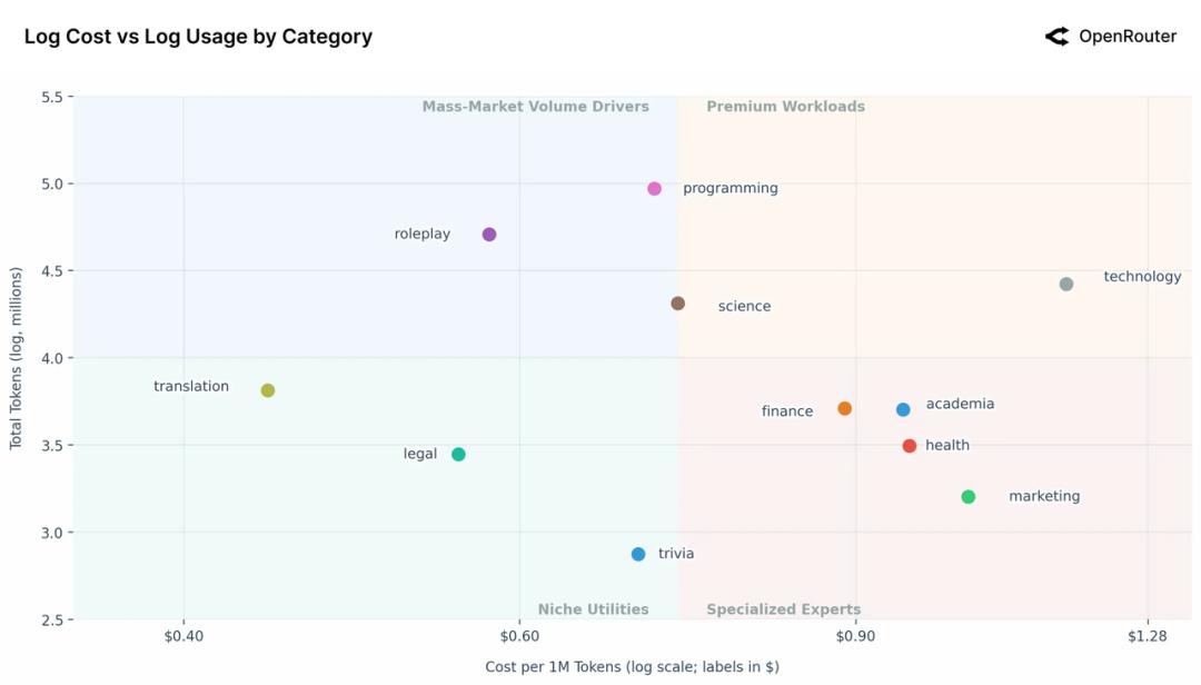 然而,OpenRouter提供了首个基于真实算力消耗的上帝视角。