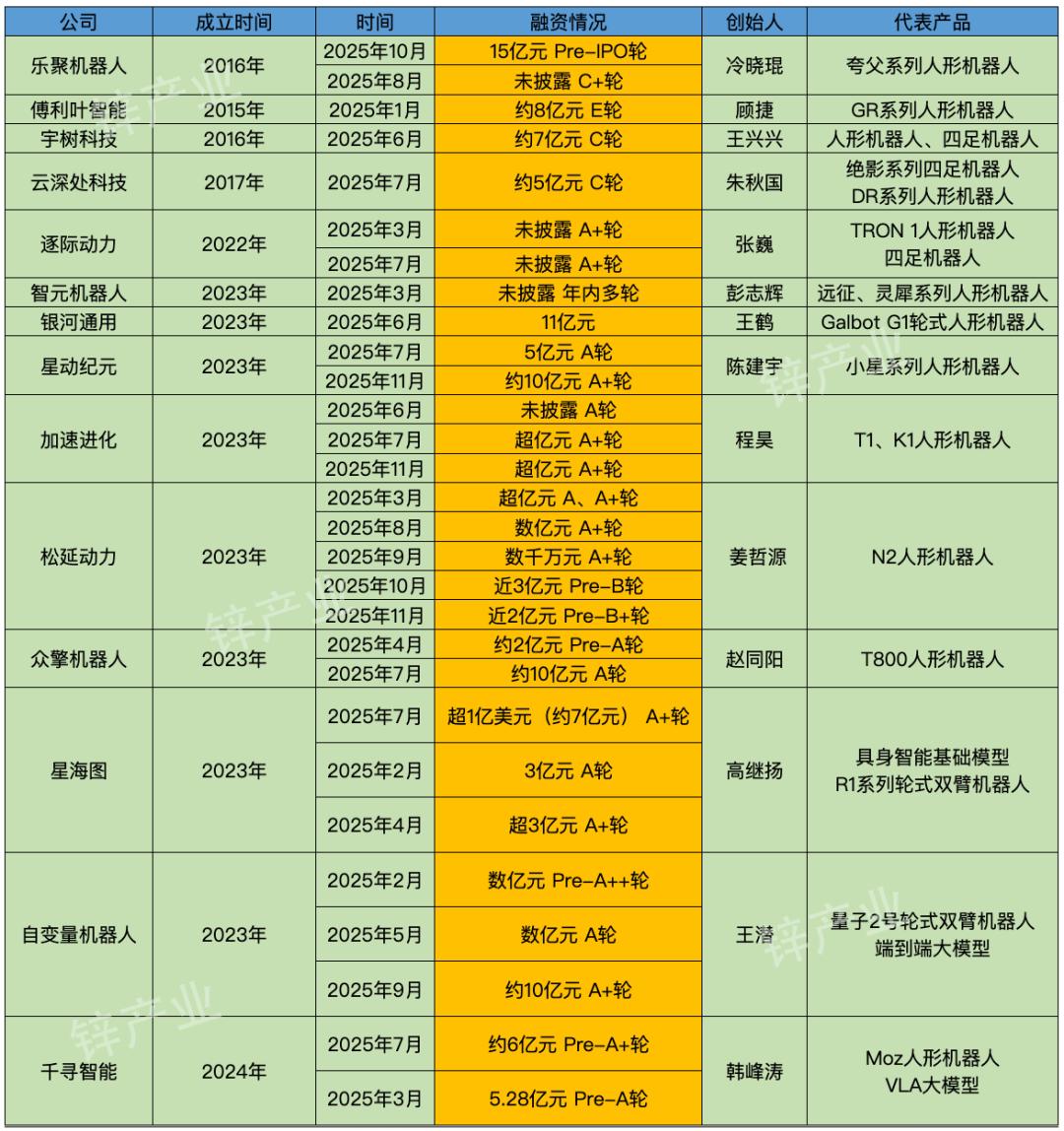 这里我们就长期关注的具身机器人团队在这一年的融资情况进行了汇总整理:
