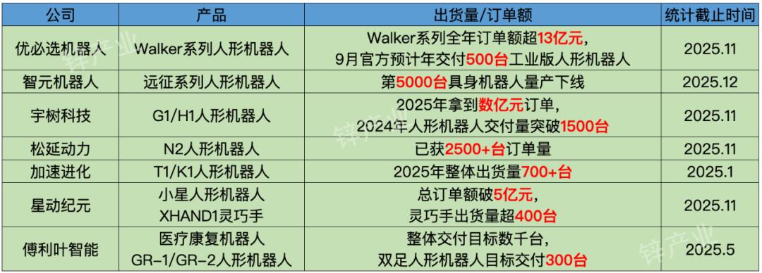 今年具身机器人千台出货/订单量成了一个标志性数据,我们预计,出货量TOP5的企业都已经拿到了千台订单。