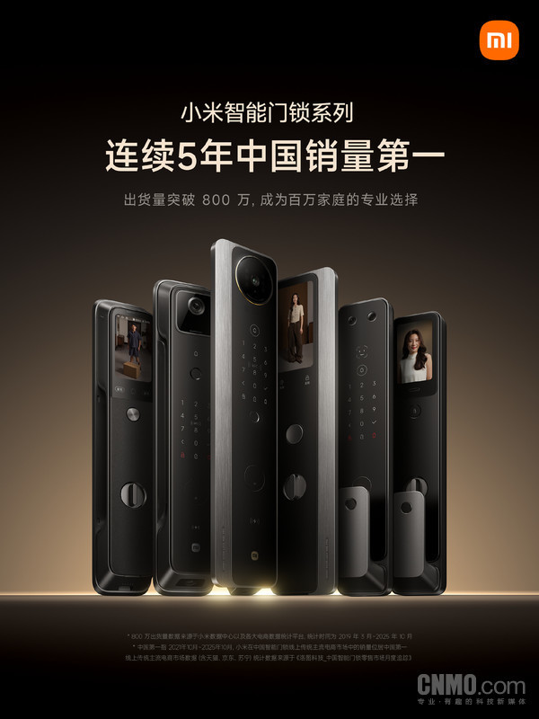 【CNMO科技消息】12月8日,小米智能生态官方宣布,小米智能门锁销量连续5年中国第一,出货量突破800万台。