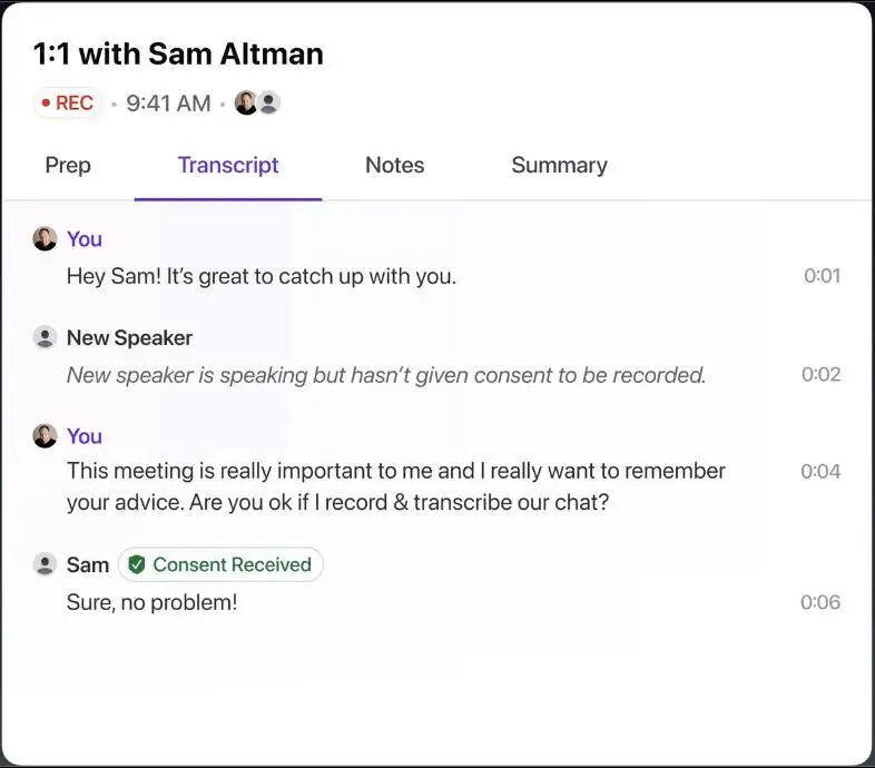 第二重是「同意选项」:未经他人允许,就不会以任何形式记录第三方的说话内容。