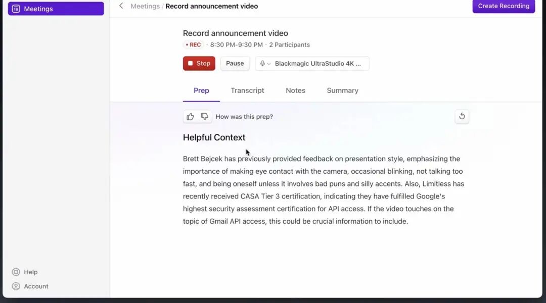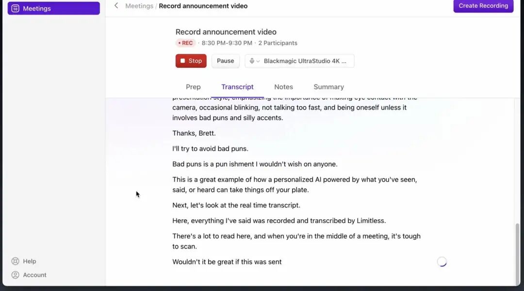 Limitless Pendant 拥有实时记录的功能,因此它可以算得上一个语音备忘录,以此来克服大脑在记忆和注意力方面的局限性。