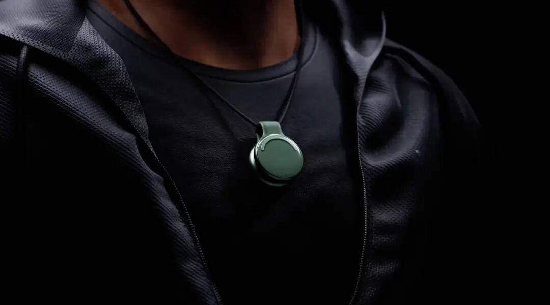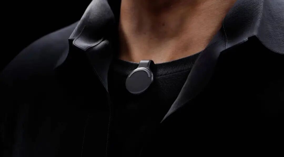 U 型夹子结构,能让 Pendant 成为挂在脖子上的吊坠,或者直接用磁吸口固定在衣服上。