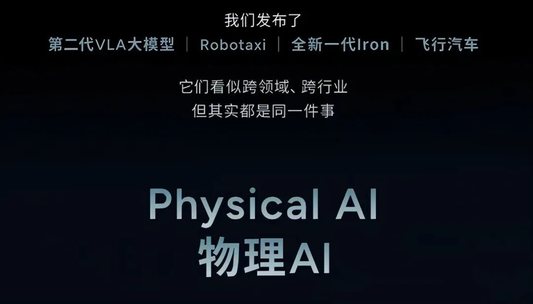 其中,包括能直接由视觉信号产生驾驶动作的第二代VLA大模型、计划在2026年推出并试运营的三款Robotaxi(自动驾驶出租车)车型、步态惊艳的拟人机器人IRON,以及已进入试产阶段的飞行汽车。