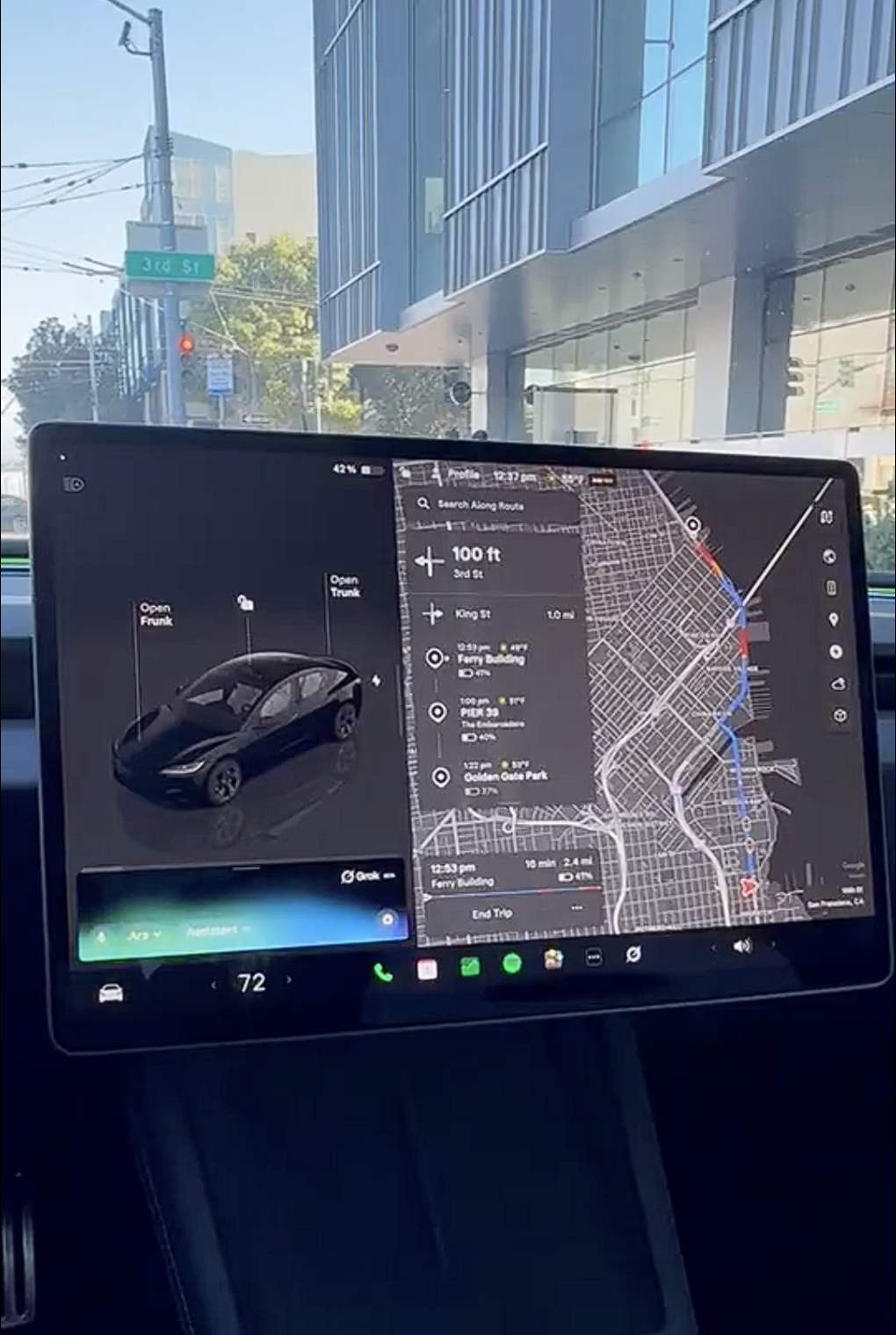 根据特斯拉介绍,驾驶者发出语音指令后,Grok 会在中控屏上依次加入多个目的地。特斯拉称,这项升级旨在让 Grok 成为“你的私人向导”。