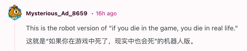 大量网友把这个情节与《机械战警》《刀剑神域》等作品联系起来,嘲笑现实越来越像科幻片里机器人「拔线就挂」的桥段。