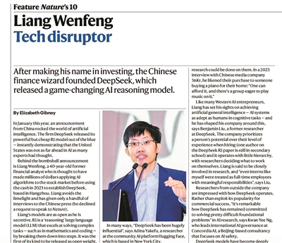 1、《自然》杂志公布2025年度十大科学人物 梁文锋、杜梦然上榜