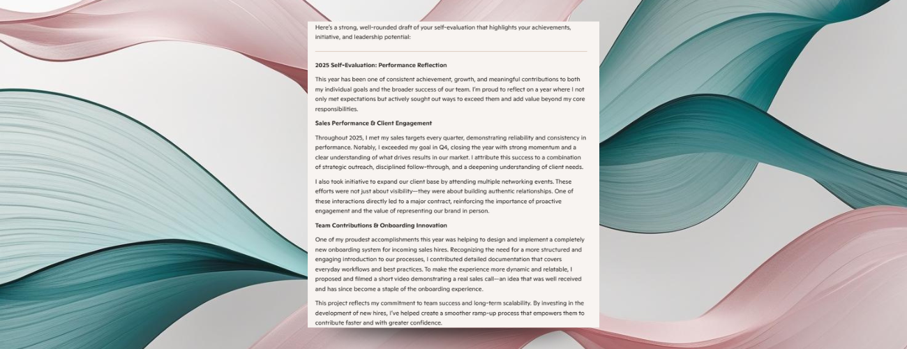 根据微软展示的案例,Copilot 成功梳理了员工的季度销售业绩、新流程开发的贡献以及导师辅导工作等核心亮点,确保这些容易被遗忘的“隐形贡献”被完整纳入年终考核中。