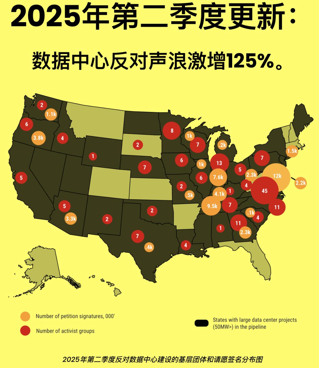 仅在2025年第二季度,就有20个大型数据中心项目因当地社区的反对而被叫停或推迟,涉及投资额高达980亿美元。