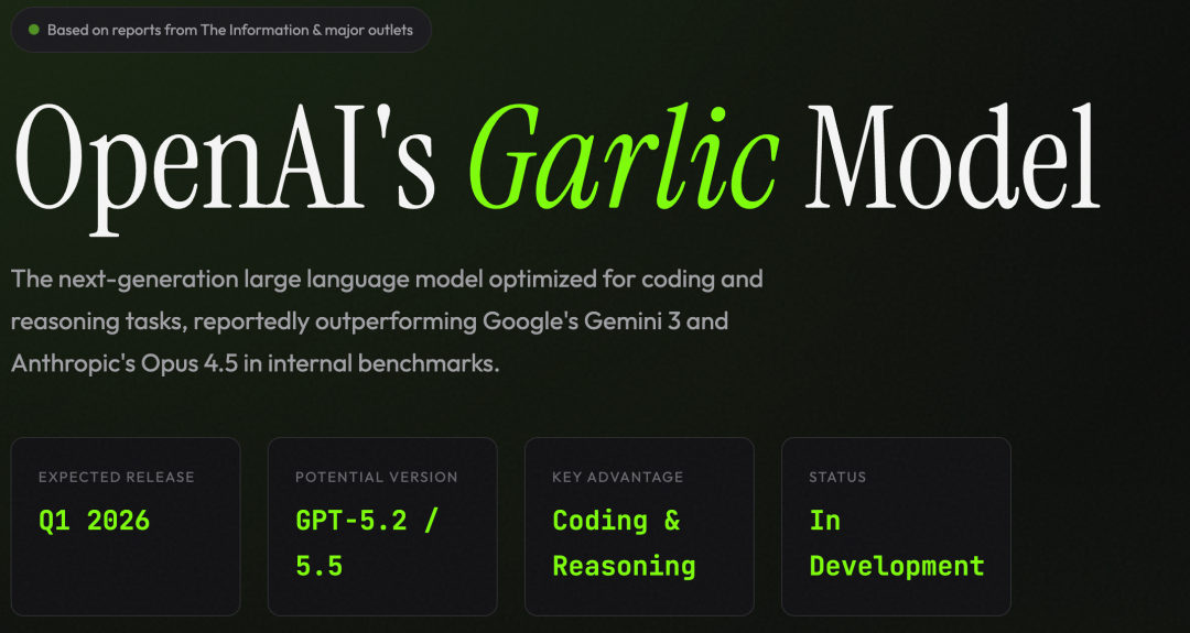 为了查证,我们交叉验证了多个报道,结论就是:Garlic 可能会在 2026 年初以 GPT-5.2 或 GPT-5.5 的形式发布。