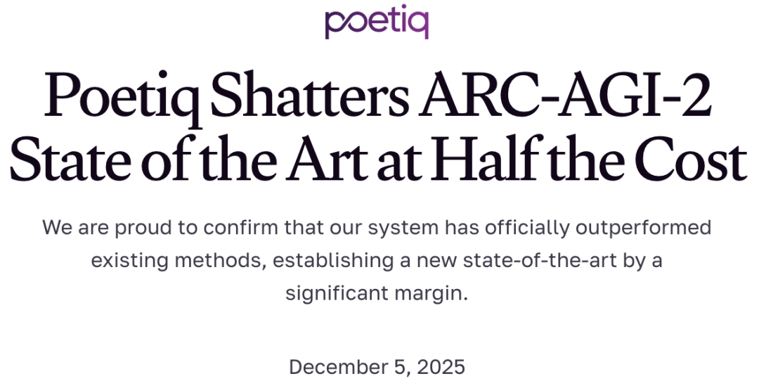 「Poetiq系统已经大幅超越现有方法,并树立了新的行业最佳表现。」