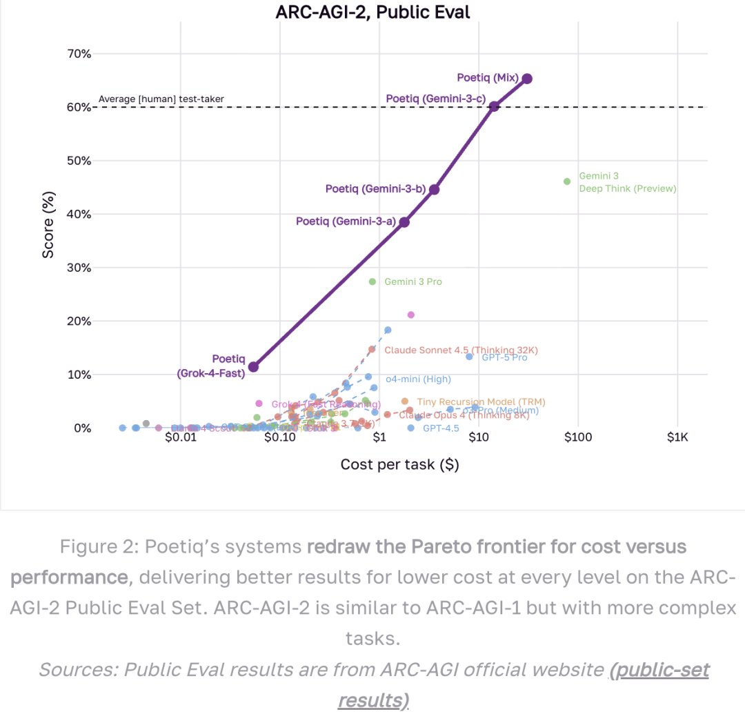 Poetiq系统可以通过多次调用Gemini-3来程序化地处理ARC-AGI-1和ARC-AGI-2的问题,从而在广泛的计算区间内实现帕累托最优。