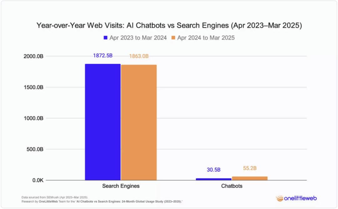 甚至,谷歌还做出了增量:一份海外研究显示,在聊天机器人访问量爆发式增长时,传统搜索引擎流量不降反增。