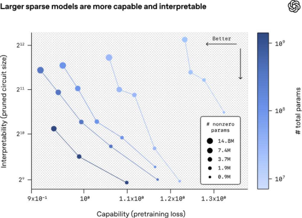 稀疏模型的电路规模比密集模型小了16倍(图源:OpenAI技术论文)