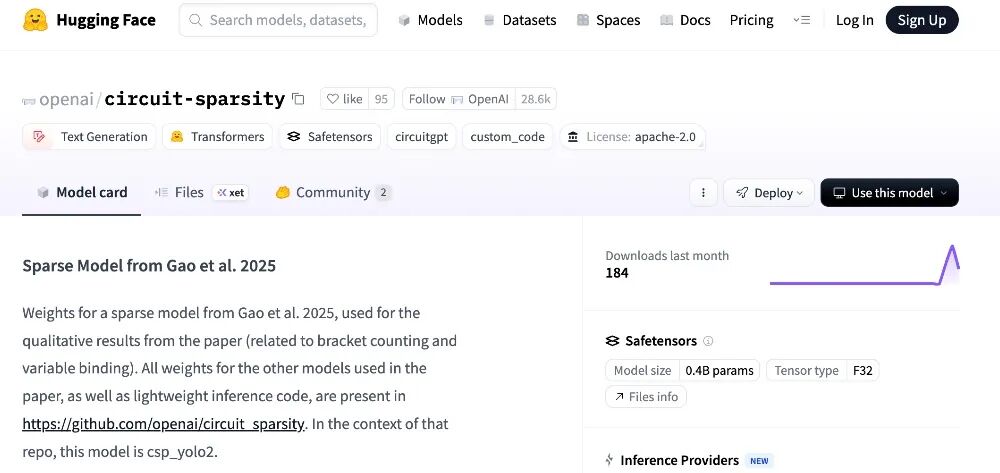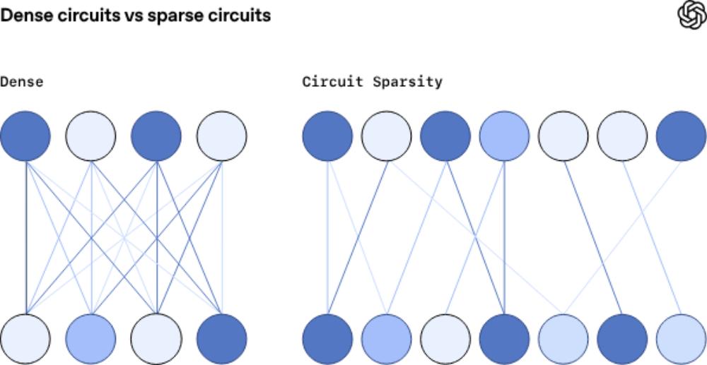 智东西12月15日报道,昨天,OpenAI开源新模型Circuit-Sparsity,模型参数量仅0.4B,99.9%的权重为零。