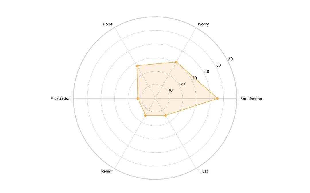 创作者样本的六维情绪雷达图。可以看到满意度很高,但信任和安全感较弱,担忧明显高于其他群体