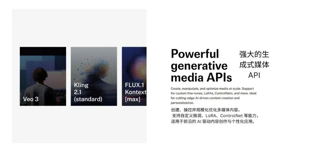 Fal 不训练基础模型,也不直接做应用。它卡在一个长期被低估的层级——为图像、视频、音频等多模态模型提供托管、推理、调度与扩展能力,把 GPU 管理、延迟控制和稳定性问题,包装成可直接调用的基础设施。