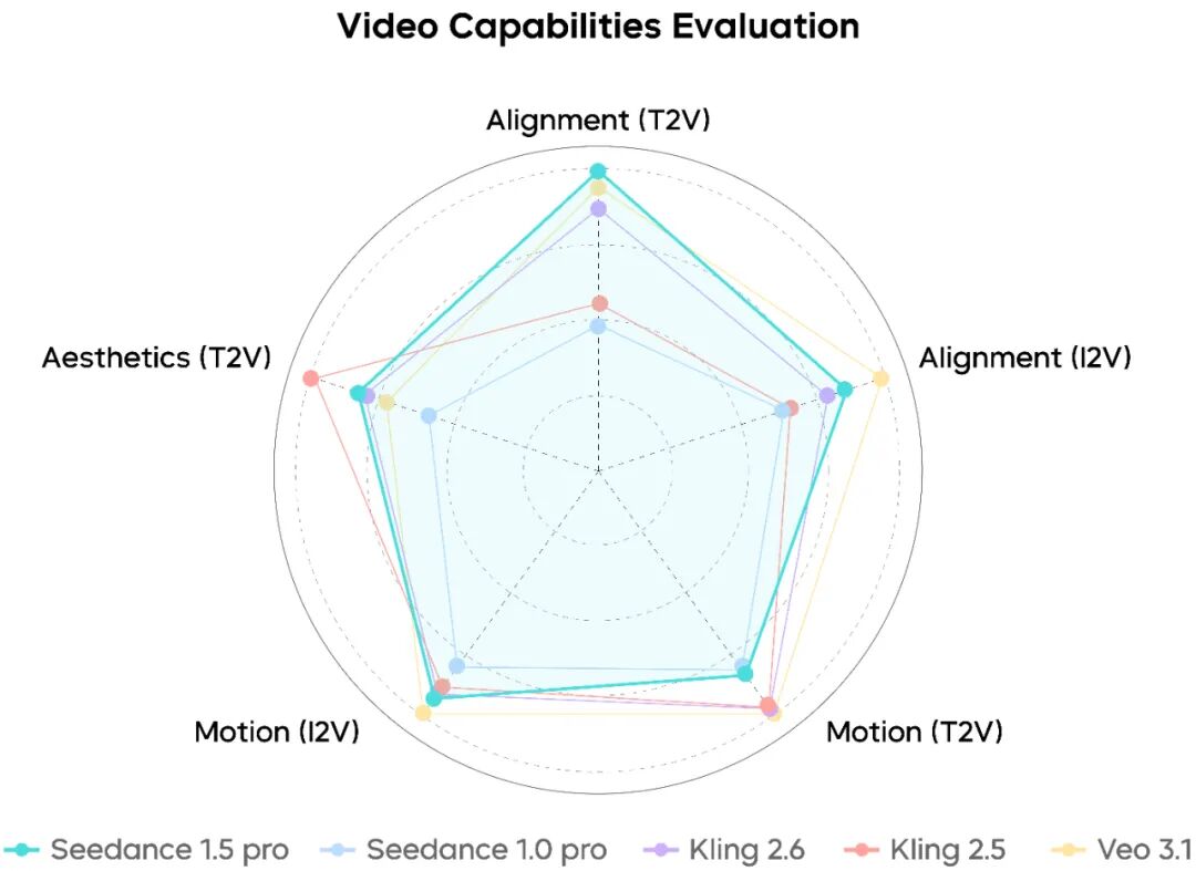 字节跳动 Seed 表示,在综合评测中,Seedance 1.5 pro 各项关键能力处于“业界前列”。目前,Seedance 1.5 pro 已上线即梦 AI 和豆包。IT之家附地址如下: