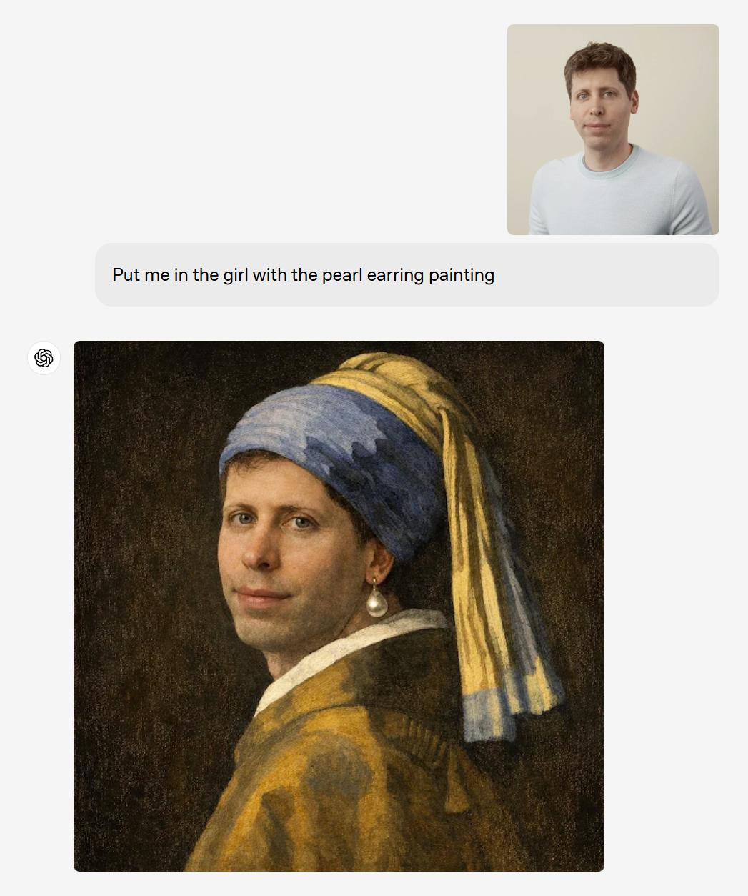 实际上,山姆・奥特曼之所以发这样一张辣眼睛的图片,正是为 OpenAI 刚刚推出的全新ChatGPT Images造势。而且这也不是唯一一张基于奥特曼照片改的图。OpenAI 官方号还专门单独特地发了一张这样的: