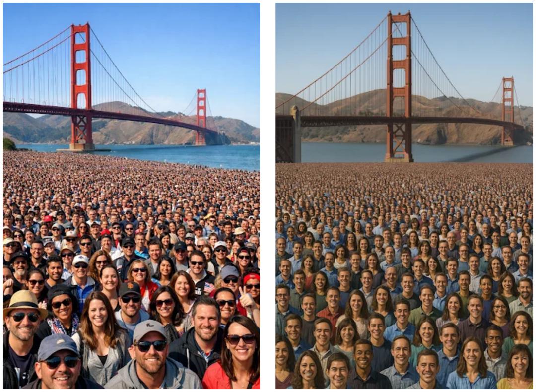 人一多,新模型修图就很难精准地维持住每个人的长相特征了。