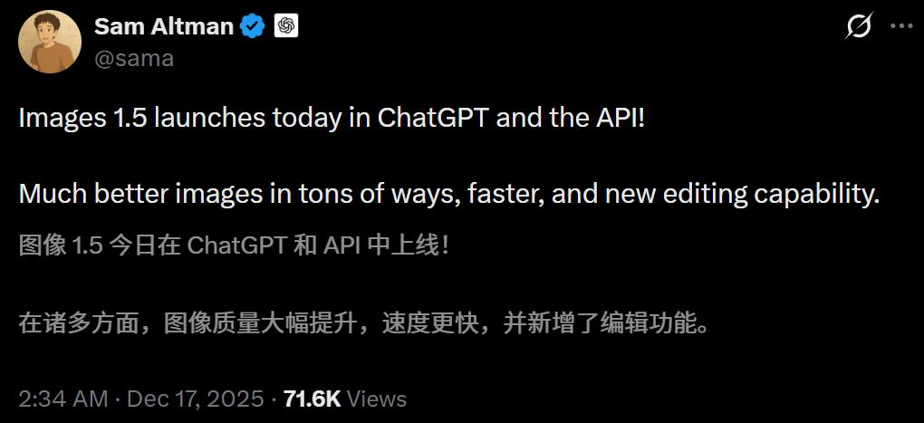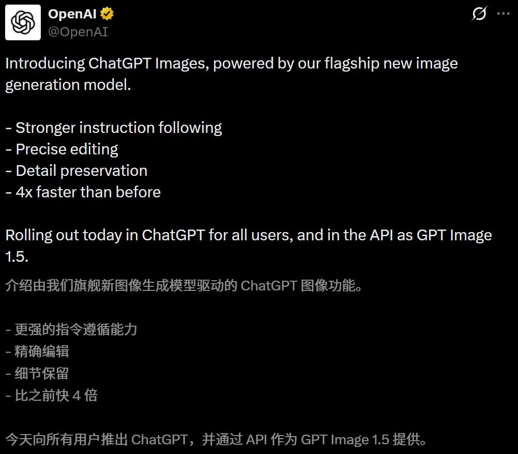 就在刚刚,OpenAI抛出了它的「圣诞彩蛋」——新一代旗舰图像模型ChatGPT Images正式登场。