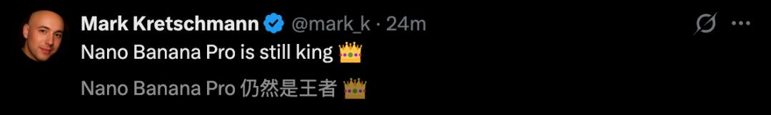 有人直言不讳:「谷歌Nano Banana Pro依然是王者。」