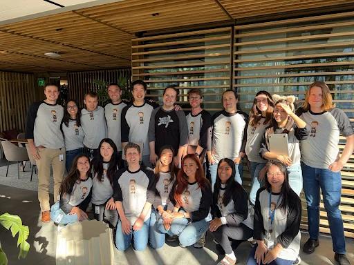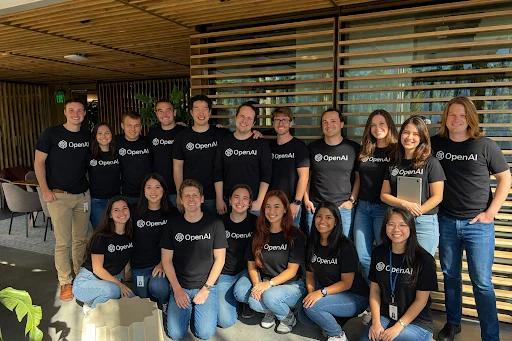Prompt:能不能给他们都穿上印着「OpenAI」字样的T恤,然后让大家都笑得开心点。
