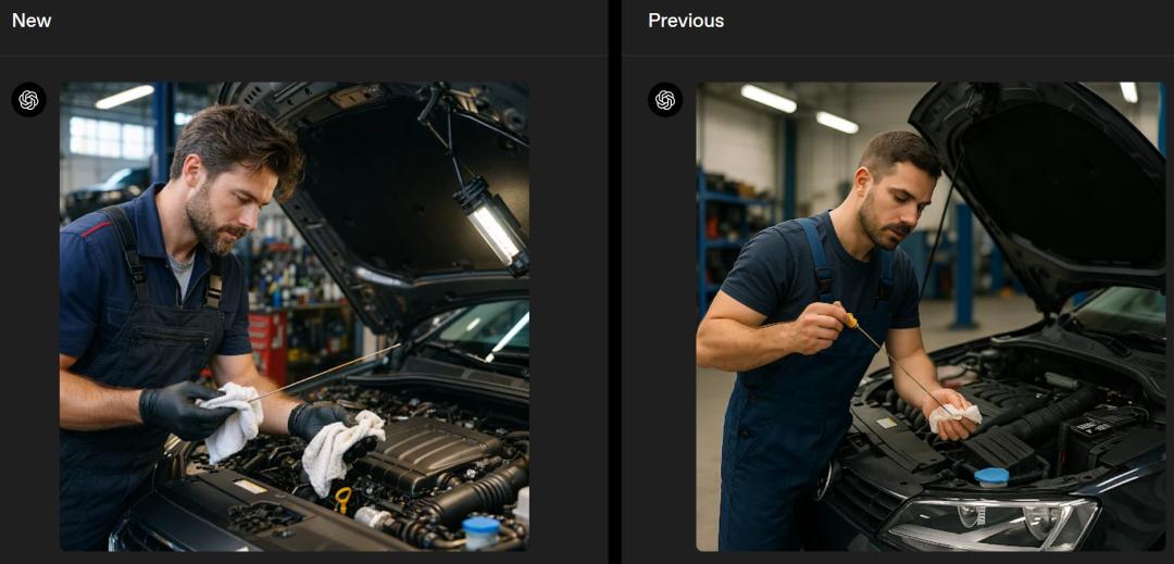 让ChatGPT Image生成一张1970年代的伦敦,新(左)旧(右)两版对比差异明显。