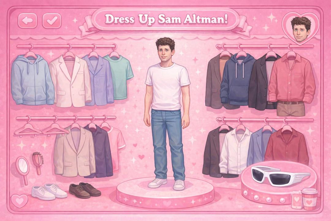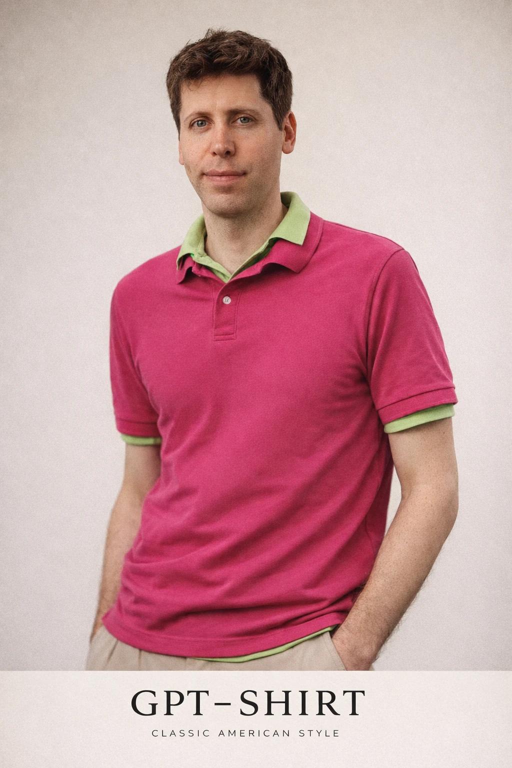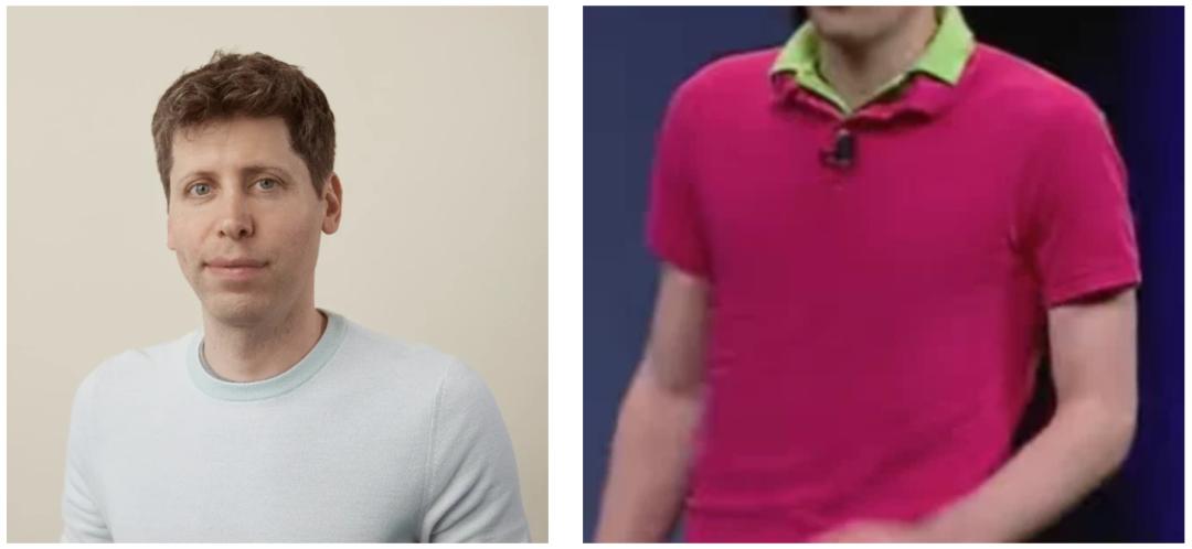 再把奥特曼在苹果WWDC一次登台演讲经典粉色衣服拿出来,再让如今的他穿上看看效果。