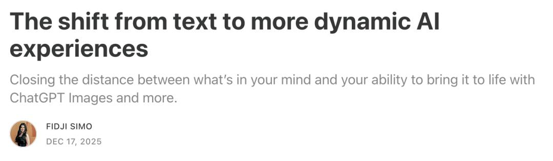 作为OpenAI的应用CEO,Fidji Simo则暗中对标谷歌Nano Banana Pro,直言这次是从单一文本转向动态AI体验。