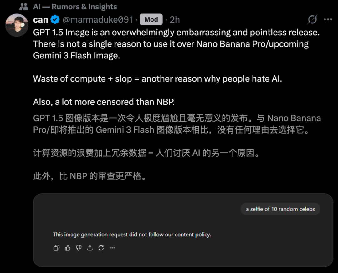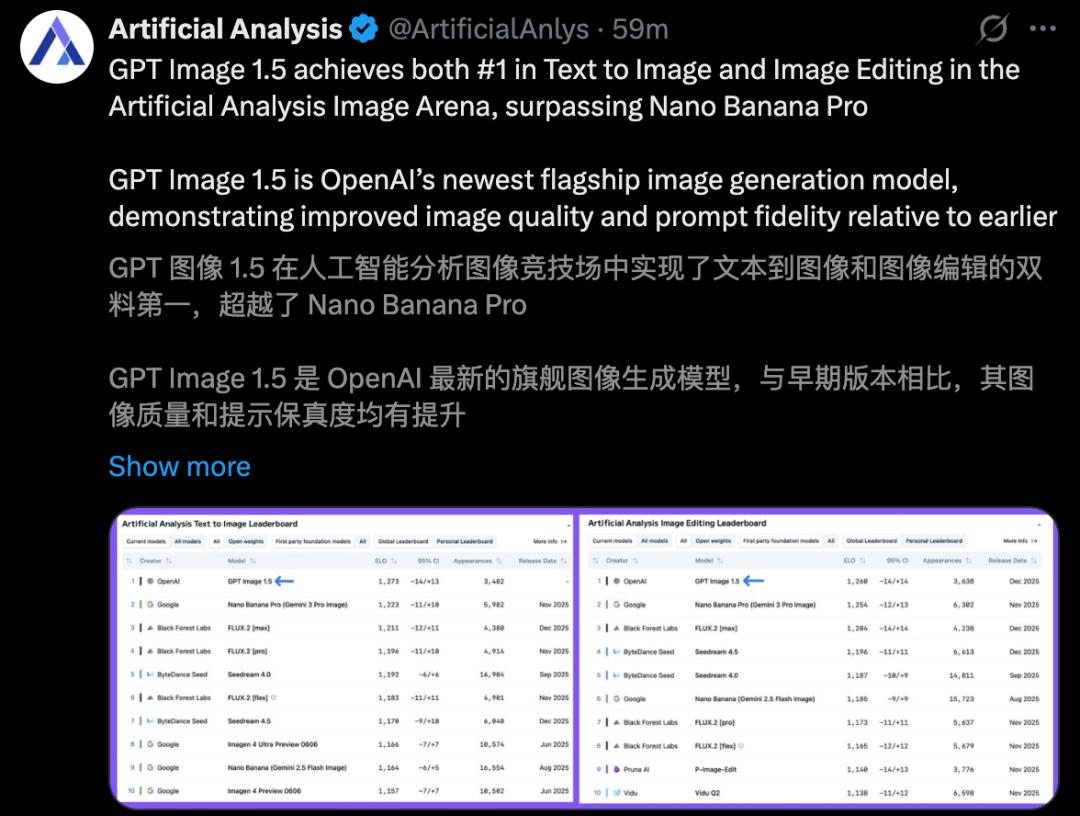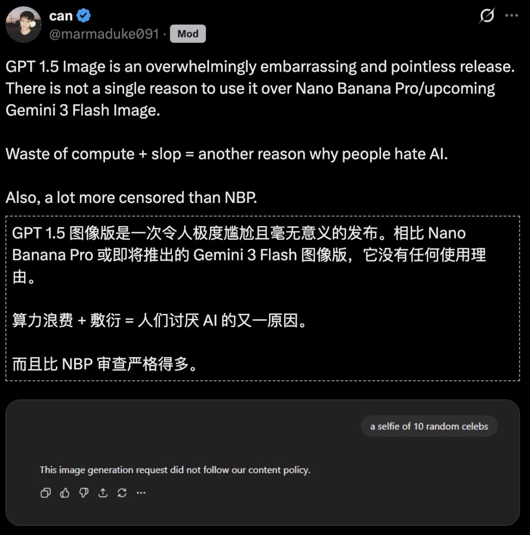 考虑到Gemini 3.0 Flash马上要来了,新的Nano Banana图像生成功能或许速度更快、价格更便宜,不知道OpenAI这次的Image 1.5是不是「徒劳的挣扎」。