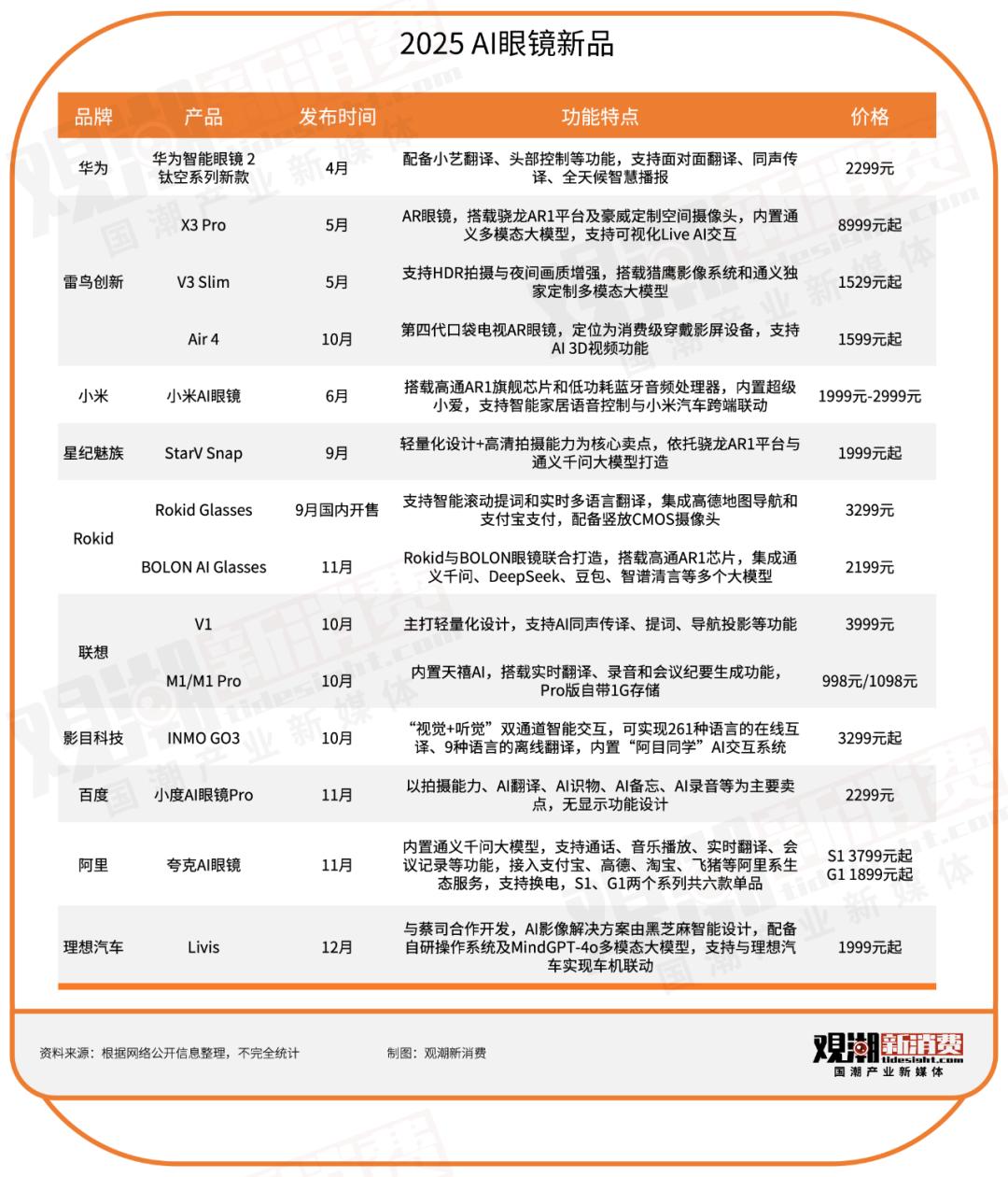 2025年,AI眼镜在消费层面最明显的变化是价格的下探。