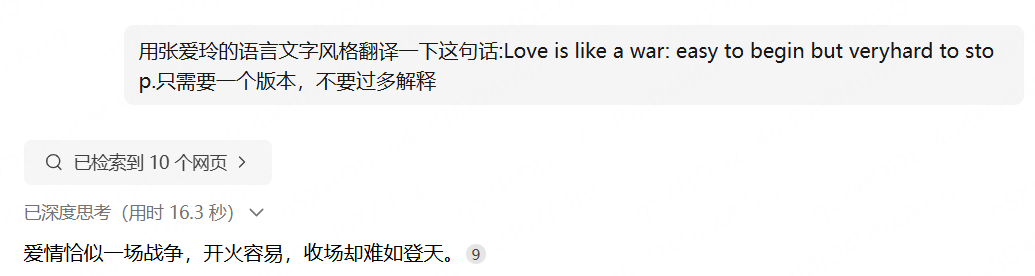 翻译功能这块,Xiaomi MiMo就显得有点“直来直去”,之前测千问的时候,它给的译文十分优雅: