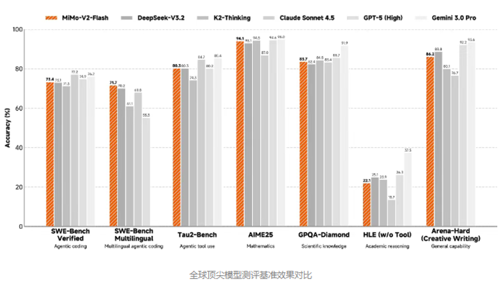 12月17日,在人车家全生态合作伙伴大会上,罗福莉详细介绍了Xiaomi MiMo-V2-Flash,在多个Agent测评基准上进入全球开源模型Top 2,基准测试性能媲美DeepSeek-V3.2。