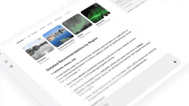 相比之前的版本,它更能理解复杂问题中的细节,从全网抓取实时信息和有用链接,输出视觉上更清晰、有条理的综合答案。