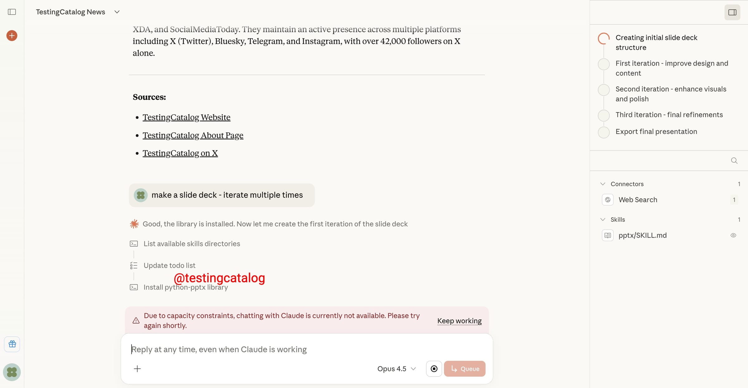 Claude 将运用不同的技能和 MCP 来实现目标。对于复杂的任务,它会生成需要执行的行动计划。无论是代码片段、文章还是 Web 应用程序,生成的所有产物都会自动归档至专用的“工件”(Artifact)标签页中,方便用户即时预览和审查,形成了一套从规划到交付的闭环工作流。