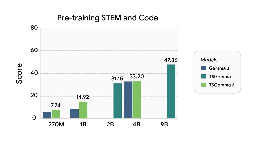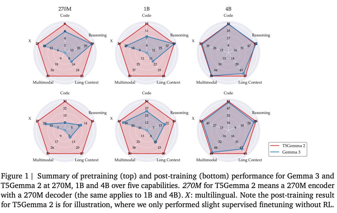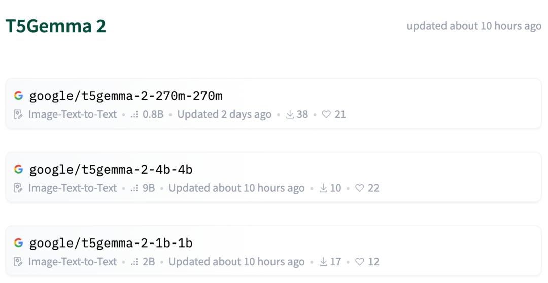 谷歌开源了T5Gemma 2:270M–270M、1B–1B以及4B–4B三种规模的预训练模型。