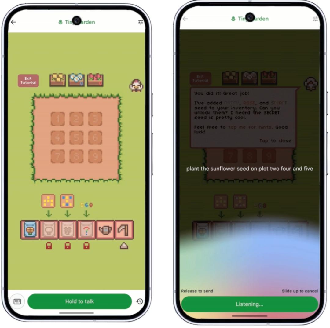 「Tiny Garden」这个Demo展示了FunctionGemma如何驱动游戏逻辑。