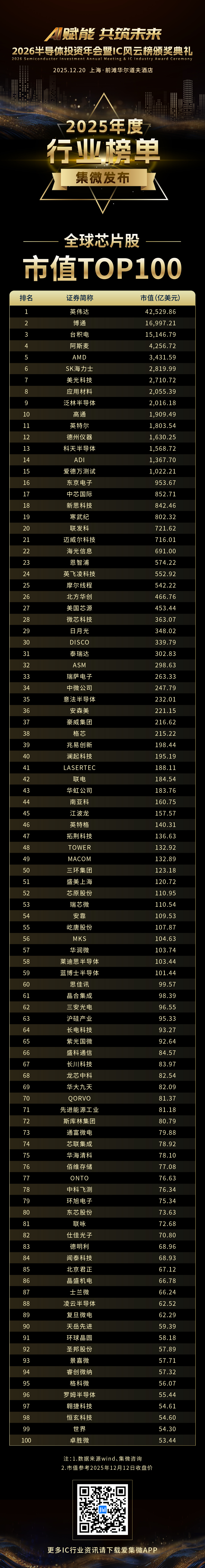 此为“全球芯片股”系列榜单之《全球芯片股——市值TOP100》。