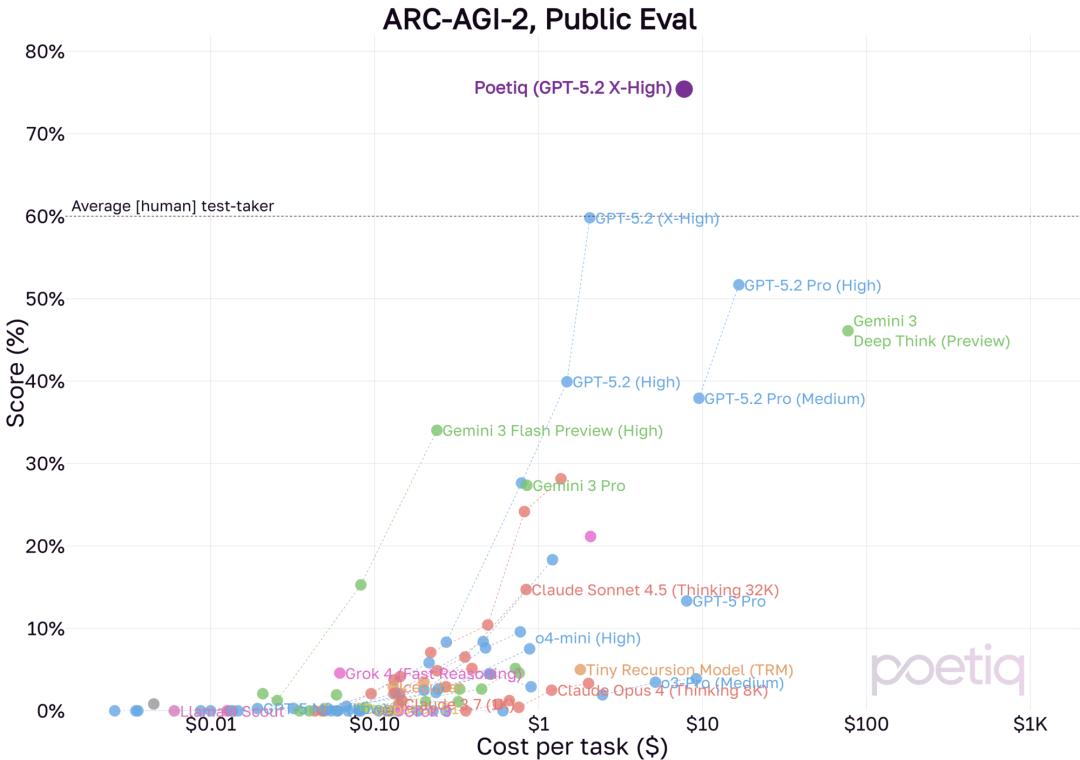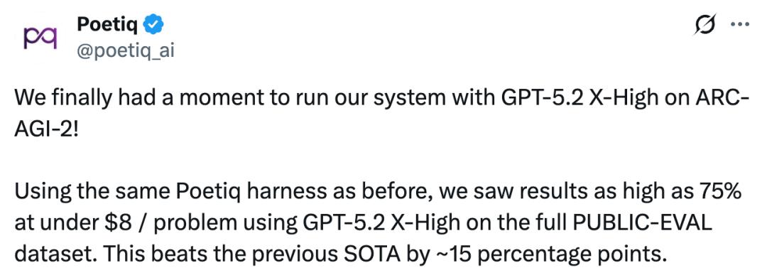 Poetiq 还特别强调了,其没有对 GPT-5.2 进行任何再训练或模型特定的优化。