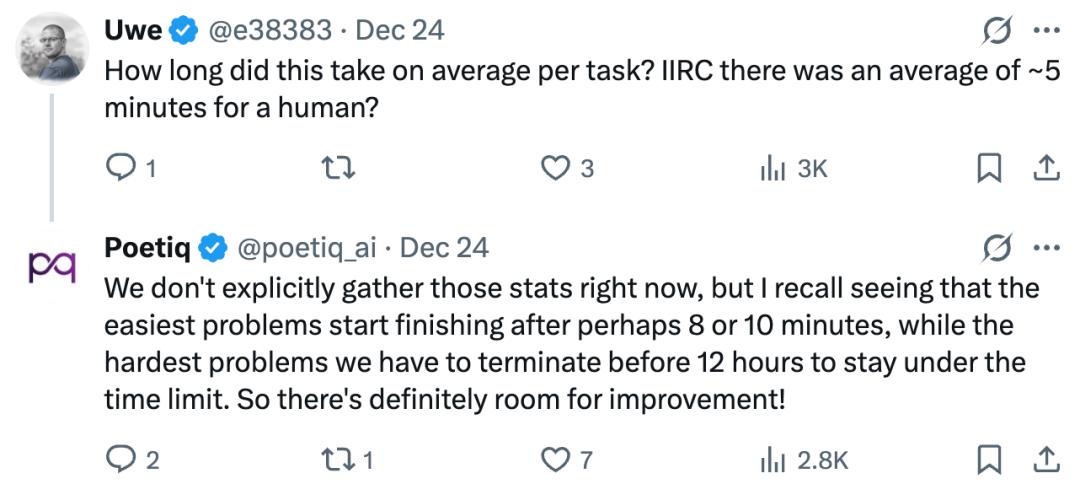 Poetiq 回复称,「我们现在没有专门收集这些统计数据,最简单的问题大概在 8 到 10 分钟后就能完成,而最难的问题必须在 12 小时之前终止,以保持在时间限制内。所以,未来肯定还有改进的空间。」
