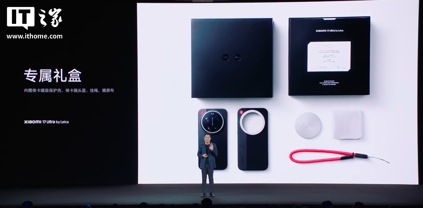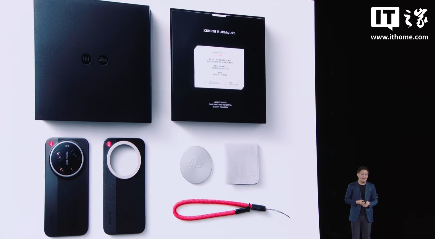 IT之家 12 月 25 日消息,小米 17 Ultra 新品发布会正在进行当中,除了常规版本外,小米还带来了小米 17 Ultra 徕卡版,机身铭刻徕卡红标,搭载全新大师变焦环。现已开启预售,12 月 27 日早 10 点正式开售。