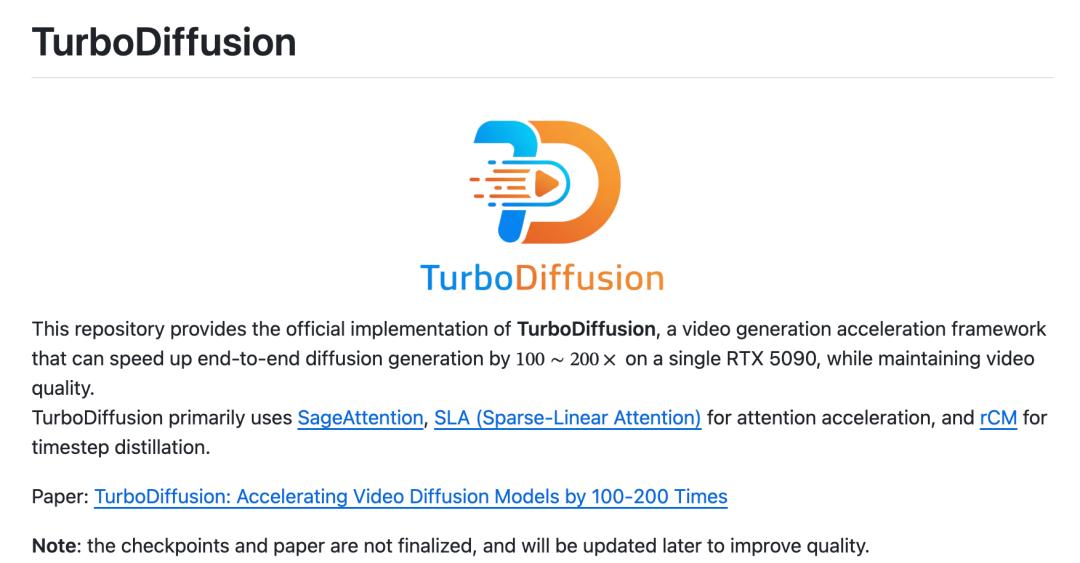 TurboDiffusion项目地址:https://github.com/thu-ml/TurboDiffusion?tab=readme-ov-file